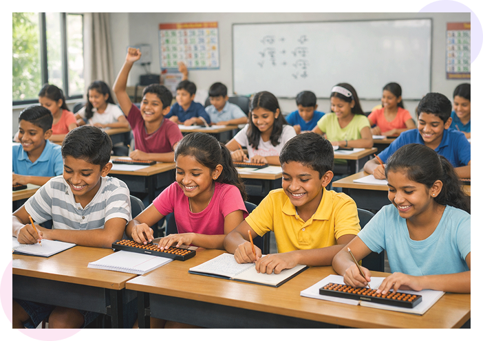 The journey begins here. In the foundation stage, children are introduced to the abacus tool and the concept of numbers. They learn to represent numbers on the abacus and perform basic addition and subtraction.